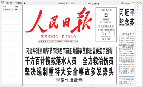 主要支持提取段落、页眉页脚、大纲、复制粘贴、PDF转docx。